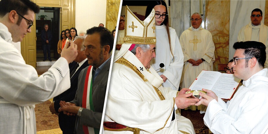 Rivolgendosi a lui, poi, lo ha esortato ad accogliere Cristo nella propria vita e a donarlo agli altri, con la stessa semplicità e profondità con cui si porta l’Eucaristia ai fratelli più fragili; ha richiamato l’importanza di vivere questo ministero come esercizio concreto della carità e della comunione, spronandolo a portare Gesù eucaristico nelle case degli ammalati e degli anziani, recuperando la pia pratica dei primi venerdì del mese.