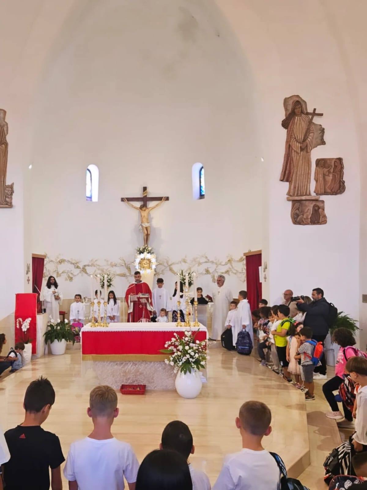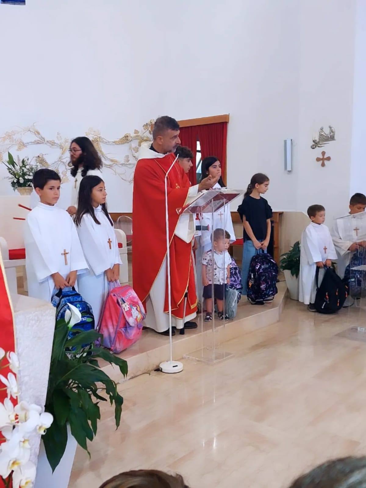 Oggi nella nostra Parrocchia “San Marco” a Locorotondo abbiamo vissuto un momento speciale: la benedizione degli studenti e dei loro zaini. 🎒