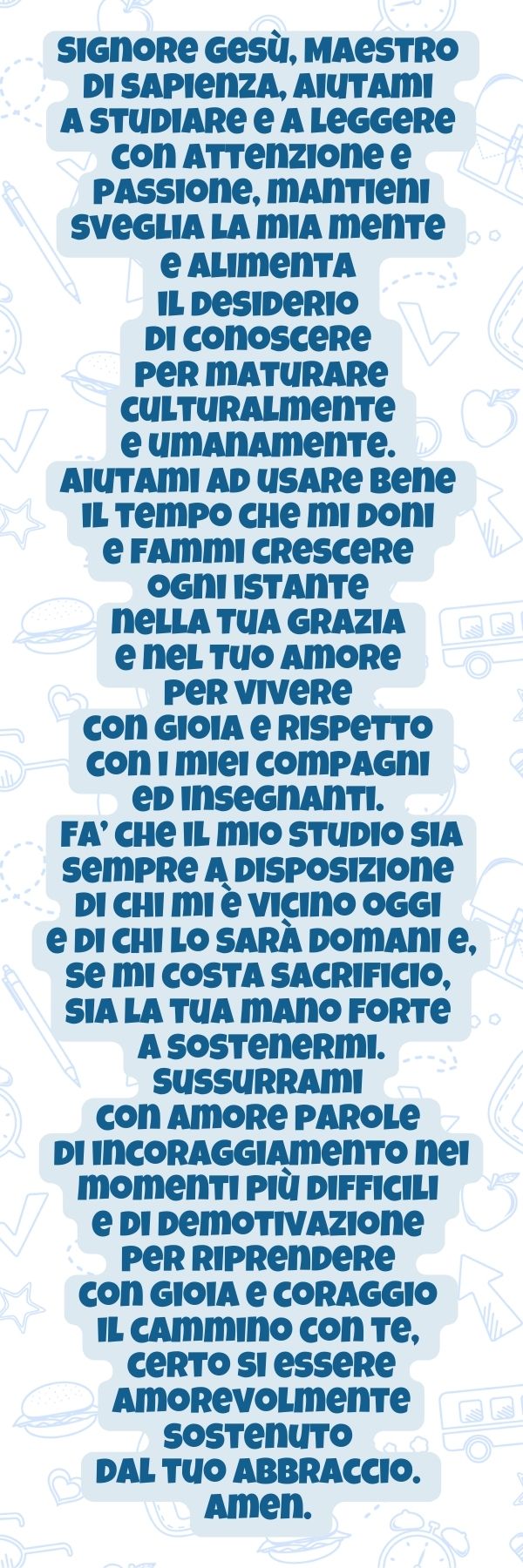 👉Nell’imminenza dell’inizio del nuovo anno scolastico come segno di annuncio, preghiera e vicinanza per questo momento importante per la vita dei ragazzi, degli insegnanti e delle famiglie, come Commissione Regionale proponiamo il Rito di Benedizione degli zaini e del materiale scolastico che negli ultimi anni si è particolarmente diffuso. Avrete a disposizione un piccolo Rito e una preghiera/segnalibro da distribuire ai ragazzi e agli insegnanti in occasione della benedizione da vivere a conclusione della messa di domenica prossima o durante un piccolo momento di preghiera che potete organizzare ad hoc. 😎