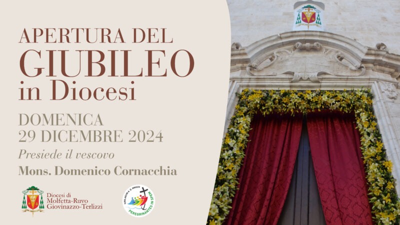 Come stabilito da papa Francesco, nella bolla di indizione, anche le Diocesi daranno inizio all’anno giubilare con una Celebrazione diocesana, che si terrà domenica 29 dicembre. La diretta dalla Cattedrale di Molfetta la Celebrazione presieduta da S.E. Mons. Domenico Cornacchia