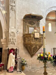 “La Risurrezione di Gesù Crocifisso è il mistero centrale della fede della Chiesa”, ha detto nell’omelia della Celebrazione Eucaristica di questa mattina l’Arcivescovo Neri. “In essa Dio si manifesta come l’Onnipotente, ma la sua potenza è quella dell’Amore che è vittorioso sul male. Un insegnamento di san Giovanni della Croce riassume il modo in cui diffondere nel mondo la forza di Gesù risorto: Dove non c’è amore, metti amore e troverai amore”.
