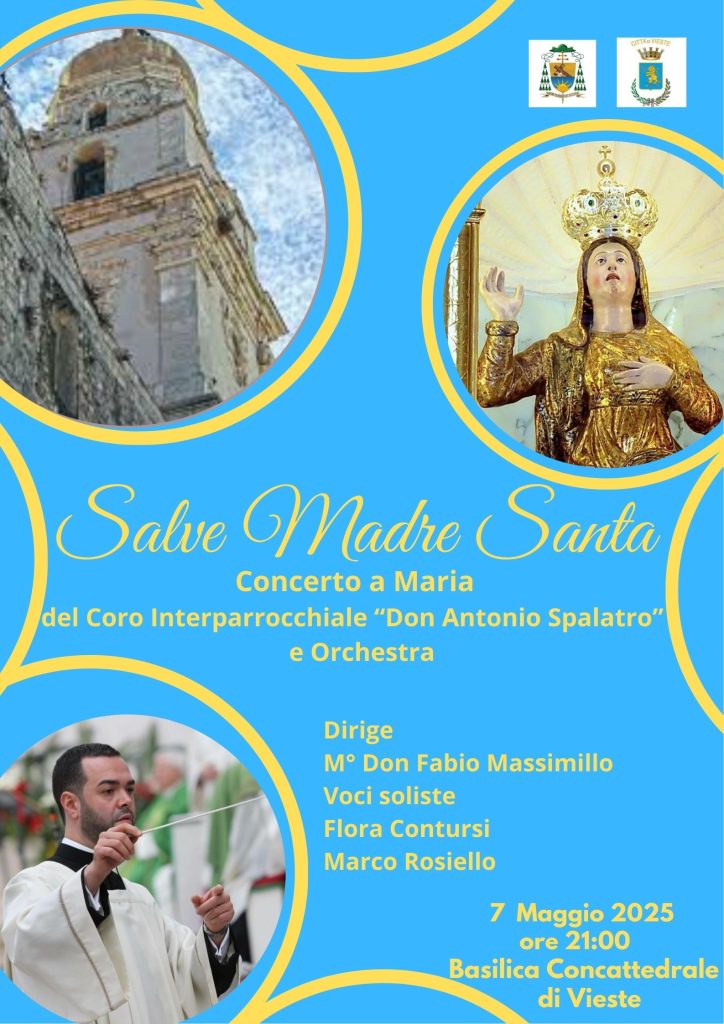 Concerto a Maria del Coro Interparrocchiale “Don Antonio Spalatro” e Orchestra, 7 Maggio 2025 alle ore 21:00 presso la Basilica Concattedrale di Vieste.