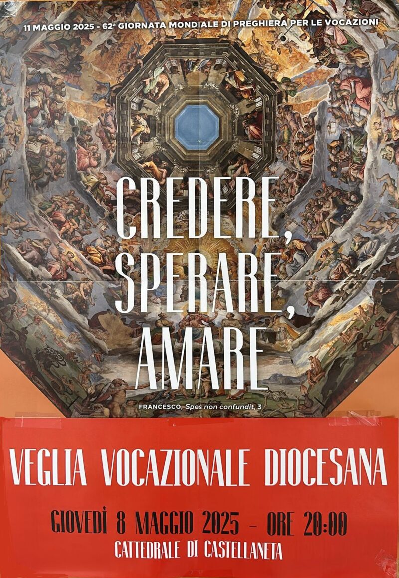Giovedì 8 Maggio 2025 alle ore 20:00 presso la Chiesa Cattedrale di Castellaneta ci sarà la Veglia vocazionale diocesana in occasione della 62.ma Giornata Mondiale di Preghiera per le Vocazioni, prevista per l’11 Maggio prossimo.