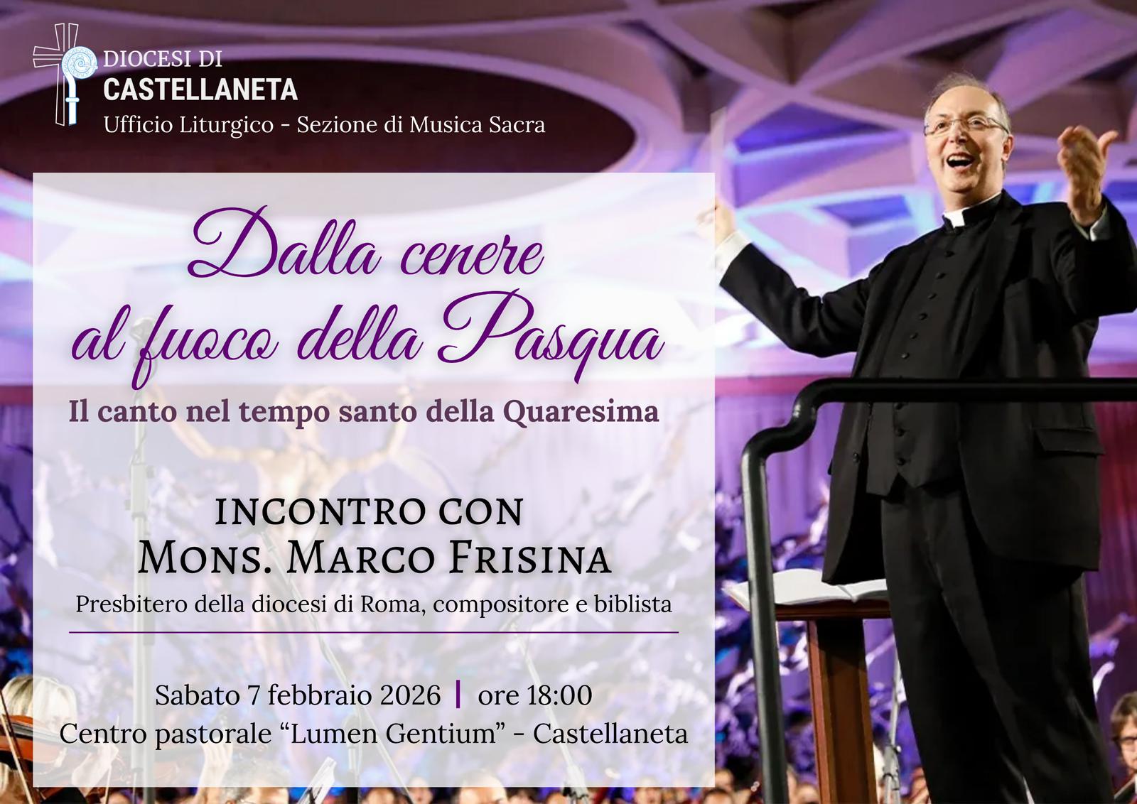 La riflessione sarà affidata a Mons. Marco Frisina, presbitero della diocesi di Roma, compositore e biblista che ci aiuterà a riscoprire il valore del canto come servizio alla liturgia e alla preghiera in questo tempo forte dell’anno liturgico.