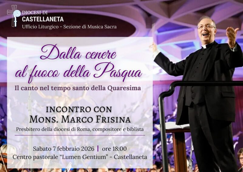 Dopo l’appuntamento vissuto insieme il 15 novembre 2025 in occasione del “Giubileo dei cori parrocchiali”, durante il quale abbiamo volto la nostra attenzione al tempo di Avvento e come animarne le liturgie, la nostra Chiesa Diocesana si prepara ad un nuovo appuntamento di formazione: “Dalla cenere al fuoco della Pasqua. Il canto nel tempo santo della Quaresima”.