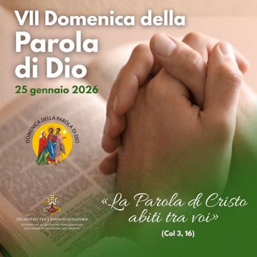 Domenica 25 gennaio 2026 la Chiesa universale celebra la VII Domenica della Parola di Dio, istituita da Papa Francesco con la Lettera Apostolica Aperuit illis. Quest’anno il tema scelto dal Dicastero per l’Evangelizzazione è tratto dalla Lettera ai Colossesi: “La parola di Cristo abiti tra voi” (Col 3,16).
