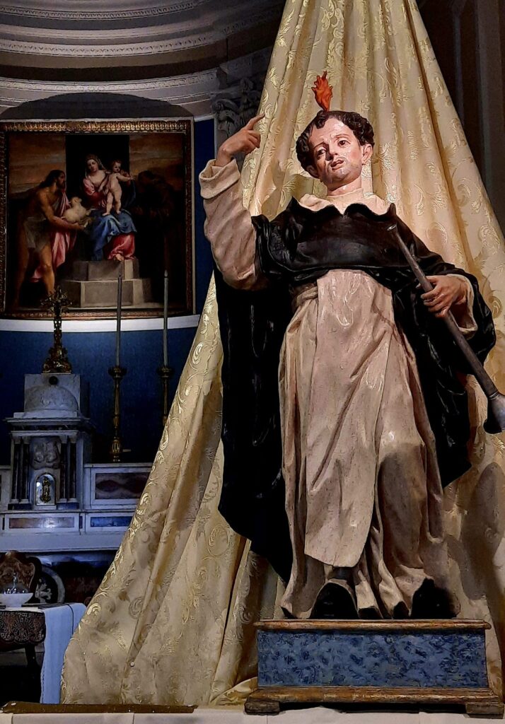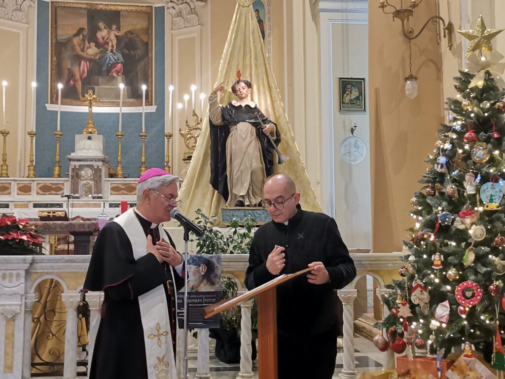 L’opera lignea raffigurante San Vincenzo Ferrer, attribuita a Nicola Antonio Brudaglio (1703-1784), venerata nella comunità parrocchiale di Santa Maria, torna a risplendere nella sua originaria bellezza, grazie al restauro realizzato e generosamente offerto dal restauratore Valentino De Sario di Oria, in memoria del padre Basilio, originario di Terlizzi.