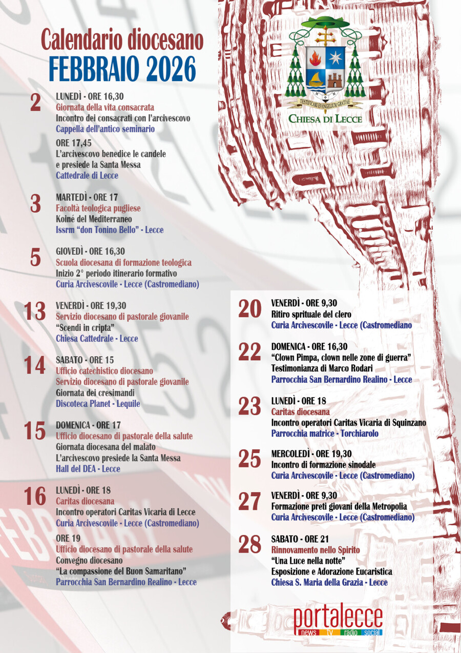 Ricco e variegato si preannuncia il mese di febbraio della Chiesa di Lecce che è accompagnata, nel suo cammino, dall’arcivescovo Angelo Raffaele Panzetta.