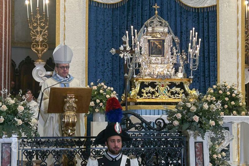 Tra poco ci metteremo in cammino e in processione accompagneremo l’icona di Maria verso il santuario a lei dedicato. Questo gesto non sia un semplice e convenzionale obbedire ad un rito, ma rappresenti un movimento del cuore di ciascuno e dell’intera comunità. Insieme sentiamoci ancora pellegrini di speranza, come spesso ci è stato ricordato nel recente Anno Santo, perché, secondo le parole di papa Francesco nella bolla di indizione del Giubileo, la vita cristiana è «un cammino, che ha bisogno anche di momenti forti per nutrire e irrobustire la speranza, insostituibile compagna che fa intravedere la meta: l’incontro con il Signore Gesù».