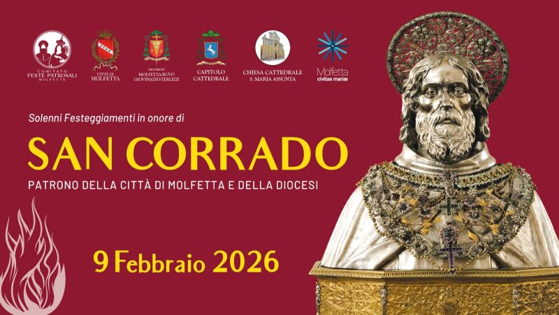 Oggi, 9 febbraio, prendono ufficialmente il via i festeggiamenti in onore di San Corrado, Patrono della città di Molfetta e della Diocesi.