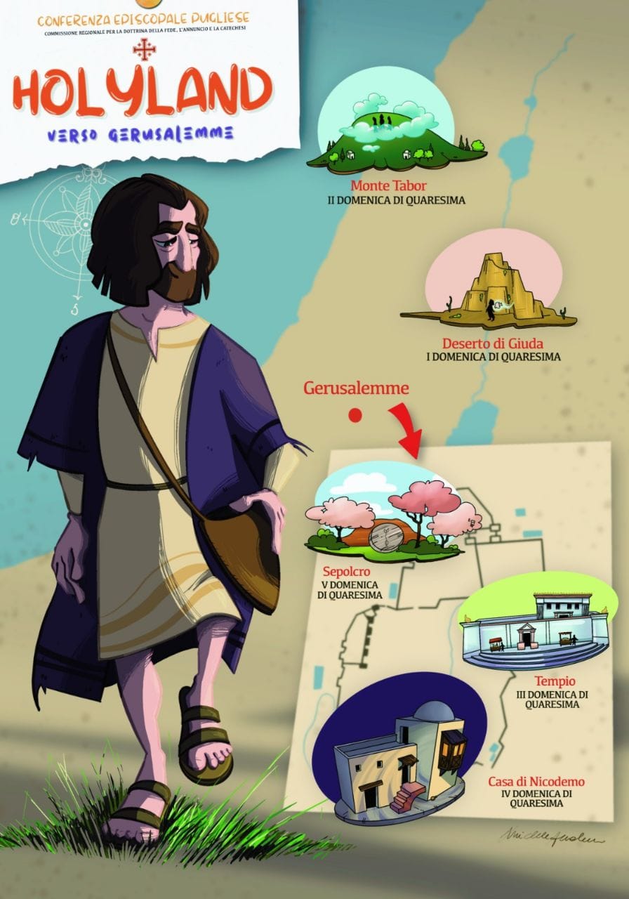 HOLYLAND24 verso Gerusalemme 😘🌟Siamo lieti di pubblicare il POSTER che accompagna il cammino domenicale di Quaresima realizzato da don Michele Azzollino 💪 (Diocesi di Altamura – Gravina – Acquaviva delle fonti). 😘😘😘A lui il nostro grazie. Domani lo troverete su: https://www.istitutopastoralepugliese.org/commissione-regionale-per-la-dottrina-della-fede-lannuncio-e-la-catechesi-puglia/
