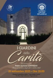 Il primo appuntamento presso il giardino della Casa della Carità, domenica 21 settembre 2025 alle ore 20 a Poggiardo, con padre Antonio Loffredo con il tema “Prendersi cura degli altri e della città”.
