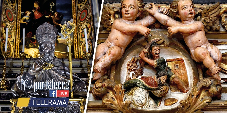 Vi è però un secondo singolare episodio di cui la statua, oggi custodita presso il Museo diocesano di arte sacra di Lecce, si rese protagonista. Stando sempre agli scritti del Cino, lo scultore Gigante ripeté per ben tre volte la fusione del busto ma il viso del martire presentava sempre un’imperfezione: una sorta di piccola cicatrice fra le sopracciglia. Scrisse allora al vescovo Michele Pignatelli, chiedendo consiglio sullo strano ripetersi dell’imprevisto. Il santo sarebbe però apparso in sogno ad un religioso, rivelando come quel segno gli appartenesse: se l’era procurato da ragazzo, in seguito ad una caduta.