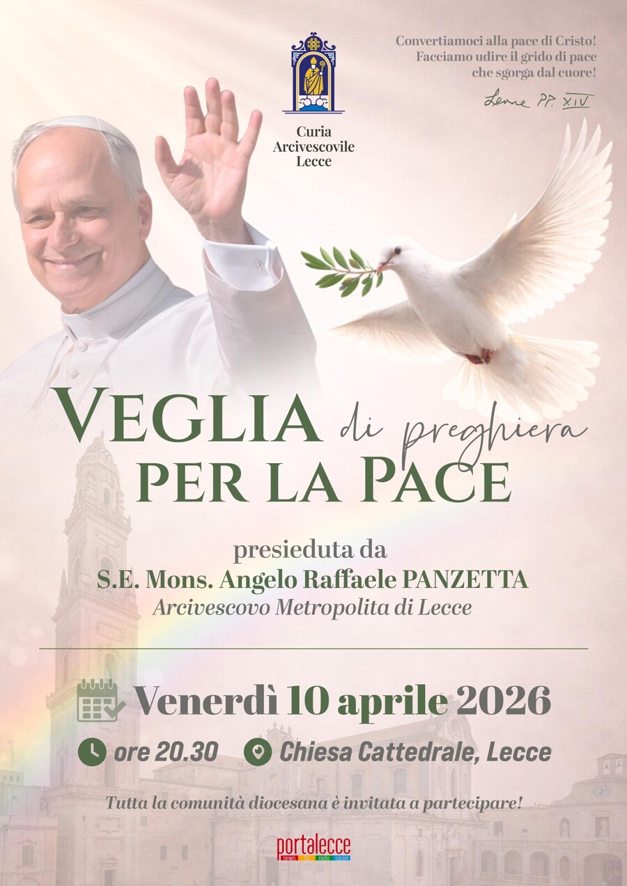 Così, stasera, 10 aprile, l’arcivescovo Angelo Raffaele Panzetta, accogliendo l’invito di Papa Leone – “Facciamo udire il grido di pace che sgorga dal cuore” – e facendosi interprete dell’intera comunità cristiana che vive in Lecce, ha convocato la Chiesa locale alle 20.30 in cattedrale per la veglia di preghiera per la pace nel mondo attraverso la quale possa salire incessante la corale invocazione al Cristo Risorto, affinché in questi terribili tempi di guerra possa tornare a regnare la fratellanza e la concordia tra i popoli.