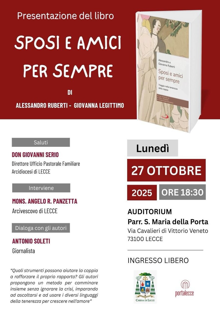 Ai saluti iniziali da parte del parroco e direttore dell’Ufficio diocesano per la pastorale familiaredon Giovanni Serio, seguirà l’intervento dell’arcivescovo Angelo Raffaele Panzetta. A dialogare con gli autori, Antonio Soleti, direttore della testata giornalistica PaiseMiu.it.