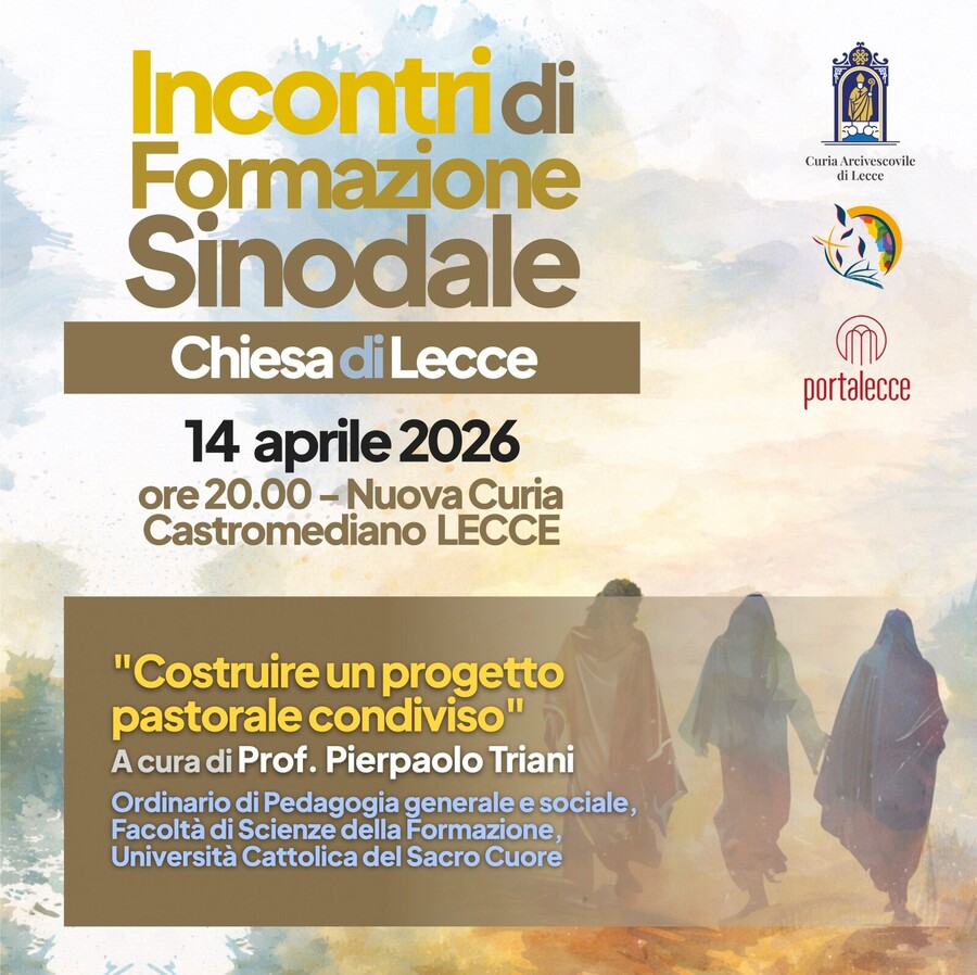 Stasera 14 aprile, alle 20, terzo appuntamento con la formazione sinodale della Chiesa di Lecce presso l’aula magna della nuova sede della Curia arcivescovile a Castromediano.
