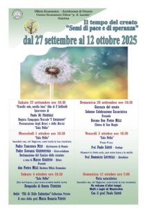 L’Ufficio Ecumenico dell’Arcidiocesi di Otranto, dal 27 settembre al 12 ottobre 2025, promuove Il tempo del creato “Semi di pace e di speranza” presso il Centro Ecumentico Oikos “p. A. Lundin” di Galatina.