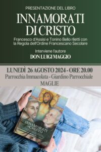 Il 26 agosto, alle ore 20:00, nel giardino della Parrocchia Immacolata di Maglie, avrà luogo la presentazione del libro “Innamorati di Cristo”. Interverrà l’autore Don Luigi Maggio.
