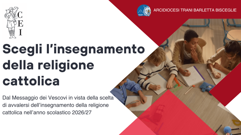 Pubblichiamo il Messaggio della Presidenza della Conferenza Episcopale Italiana in vista della scelta di avvalersi dell’Insegnamento della religione cattolica (IRC) nell’anno scolastico 2026/27. Secondo i dati relativi all’anno scolastico 2024/25 la media nazionale di avvalentisi è pari all’82,27%. Cari studenti, care studentesse, cari genitori, al momento dell’iscrizione alle prime classi dei diversi ordini e gradi di scuola, vi è data l’opportunità di scegliere se avvalervi dell’Insegnamento … Continua a leggere
