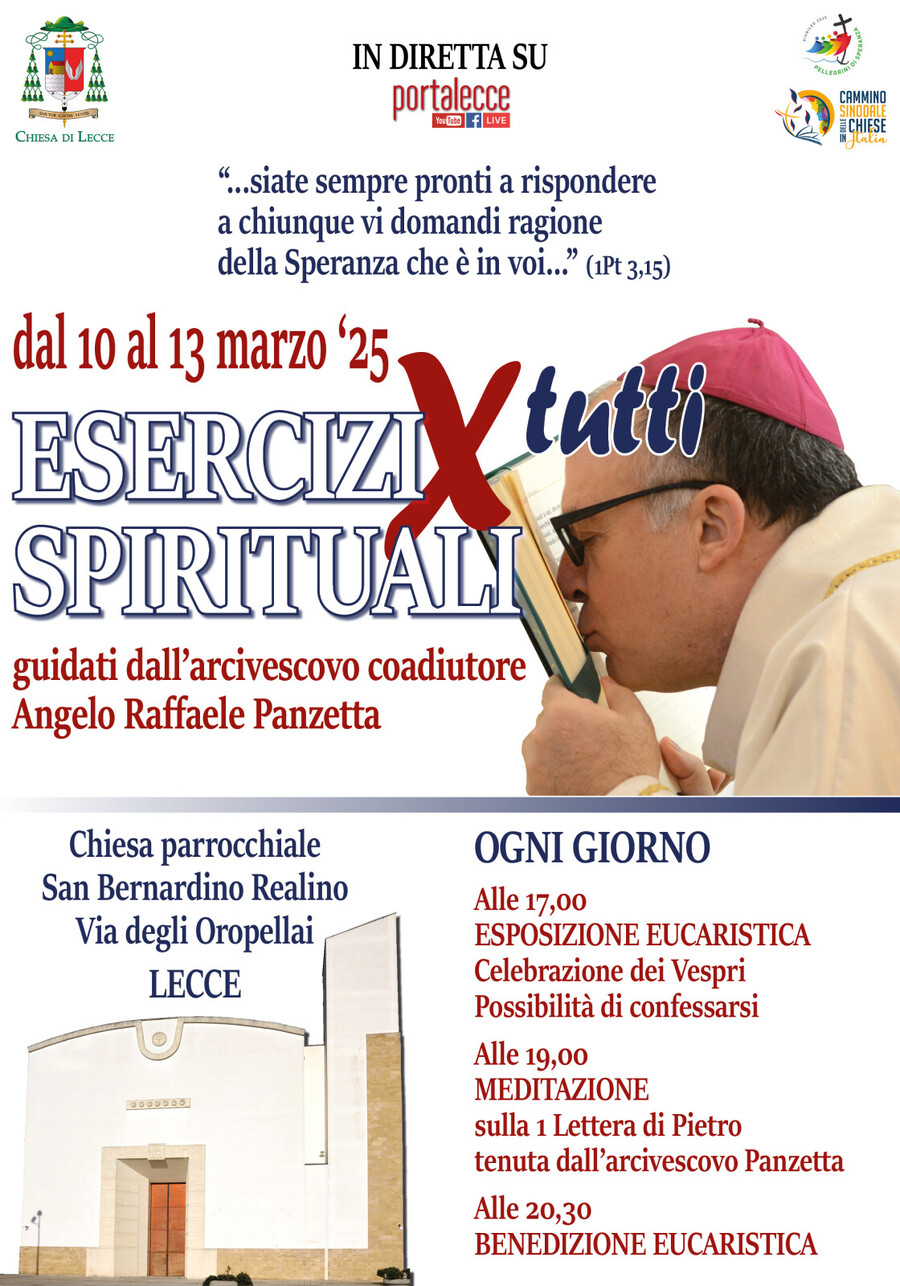 Gli esercizi spirituali che gli arcivescovi Michele Seccia e Angelo Panzetta propongono, per la prima volta in diocesi, all’inizio della Quaresima di questo Anno Santo, sono davvero per tutti. Anche per chi non potrà partecipare di persona nella chiesa parrocchiale di San Bernardino in Lecce.