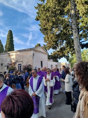Nei prossimi giorni anche i giovani di Ostuni reciteranno il rosario tra i viali del cimitero, dove oggi il vicario foraneo don Maurizio Caliandro ha presieduto la celebrazione eucaristica a cui hanno partecipato tutti i presbiteri della città.