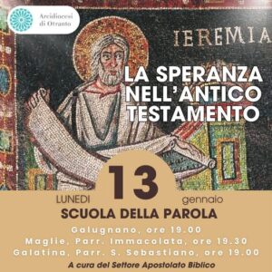Il 13 gennaio, la scuola della Parola “La speranza nell’Antico Testamento” a cura del Settore Apostolato Biblico.