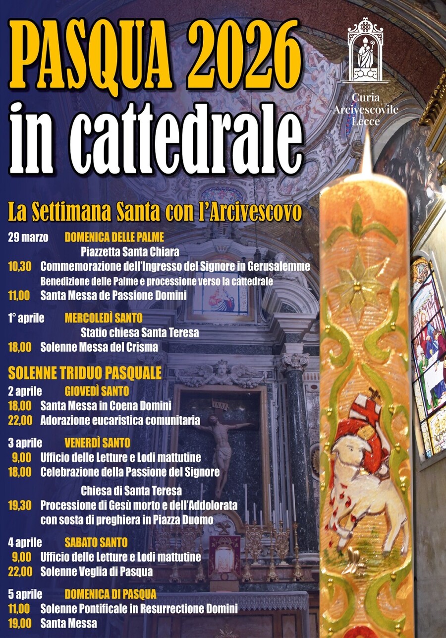 La Messa del Crisma avrà inizio alle 18 e per la regia di Yuri Caiulo e il commento di Francesco Capoccia, sarà anche trasmessa in diretta da Portalecce (pagina Facebook e canale YouTube) e Telerama (ch 15). Chi vorrà potrà seguire da casa utilizzando il sussidio preparato dell’Ufficio liturgico diocesano (SCARICA).