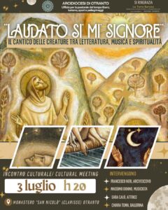 Giovedì 3 luglio, alle ore 20.00, presso il giardino del monastero “San Nicolò” in Otranto (Clarisse), avrà luogo un momento di riflessione sul Cantico delle creature di san Francesco d’Assisi, nell’VIII centenario della sua composizione.