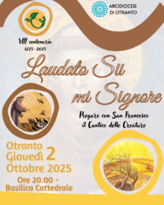 Giovedì 2 ottobre p.v., alle ore 20.00, la Basilica Cattedrale di Otranto si riempirà della poesia, della spiritualità e della musica del Cantico delle Creature di san Francesco, in occasione dell’VIII centenario dalla sua composizione (1225-2025).