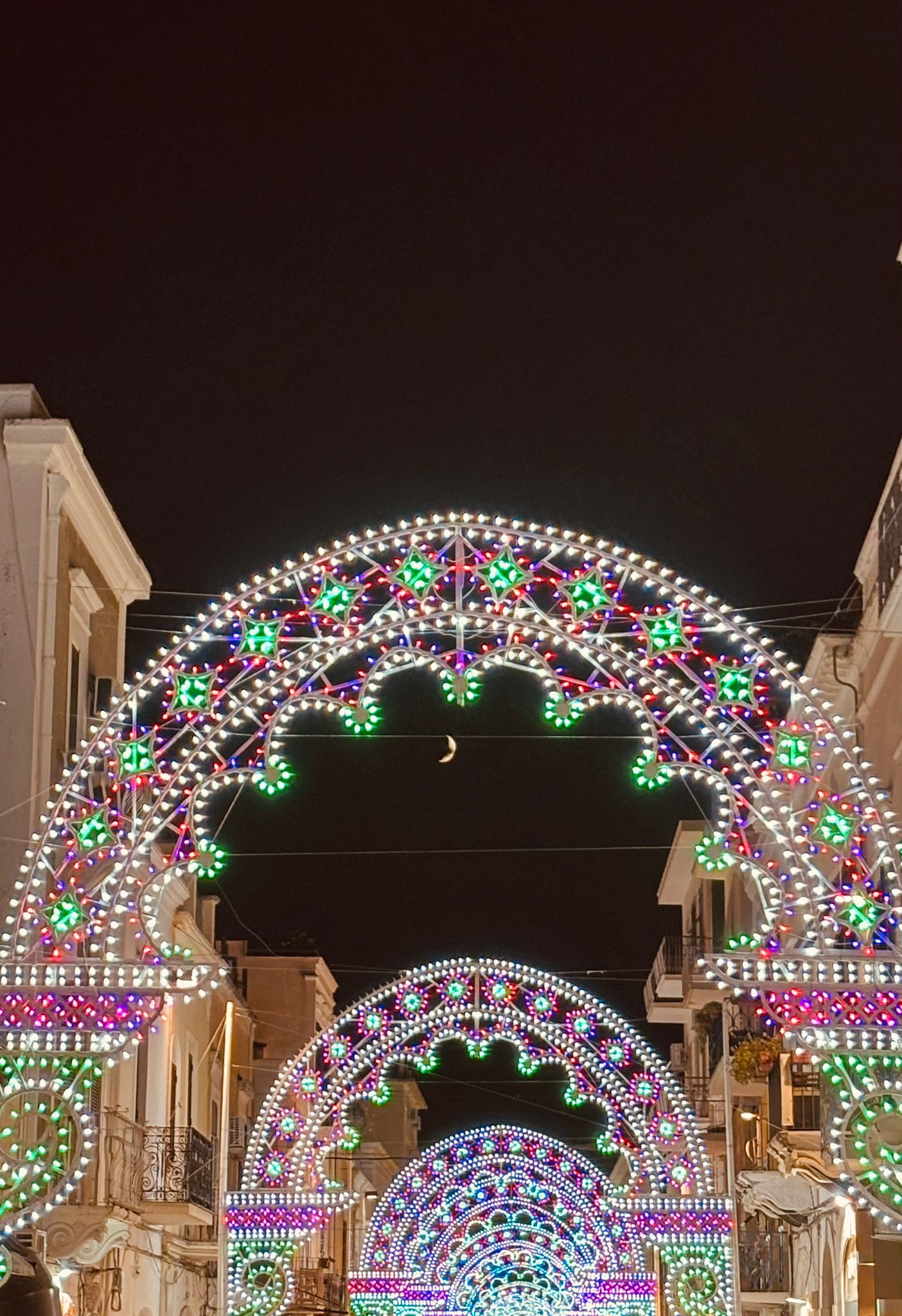 Come da tradizione, l’accensione delle luminarie apre i festeggiamenti in onore di Maria SS. di Siponto e con queste parole, rivolte alla piazza poco prima del momento simbolico, l’Arcivescovo padre Franco Moscone ha affidato alla luce e alla fede il cammino della comunità.