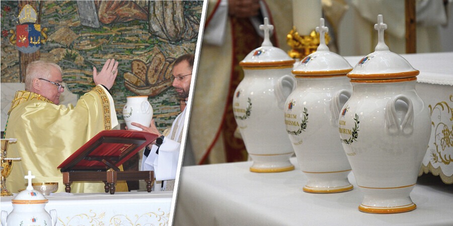Le ampolle, utilizzate durante la celebrazione, hanno contribuito a rendere ancora più visibile e significativo il momento della presentazione degli oli all’altare, prima della loro consacrazione. Successivamente, come da tradizione, gli oli benedetti sono stati consegnati ai parroci per essere portati nelle comunità parrocchiali e utilizzati nell’amministrazione dei sacramenti lungo tutto l’anno liturgico.