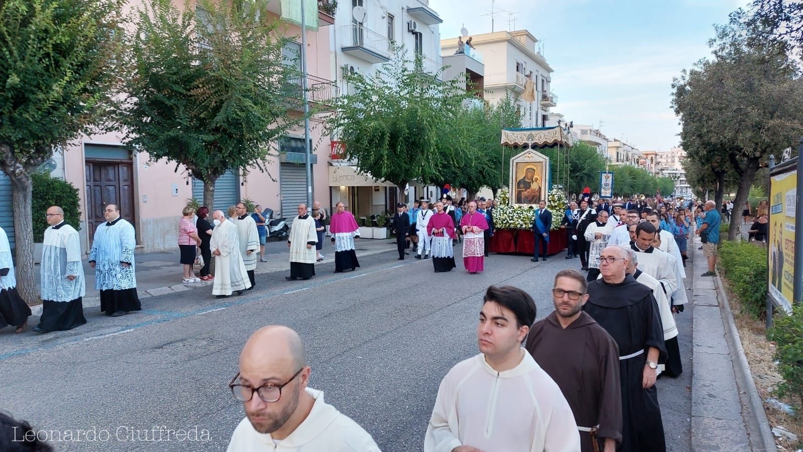Faccio appello alla città vera, sapiente e pulita che costituisce l’anima di Manfredonia, che proviene dalla sua storia bimillenaria e dalla sua fede, che da secoli ha visto nella Madonna di Siponto la sua Regina. Con l’indicare in Maria la Regina si rafforza non solo il credere, ma anche l’identità civica, basata sulla logica politica espressa da Maria nel suo canto del Magnificat. E’ il Magnificat la teologia della storia che parte dal basso, dagli ultimi, dai poveri, che solleva e costruisce, rende solidali, non scarta nessuno, dà a tutti il giusto ed edifica il bene di tutti. Il Magnificat rappresenta, nel deserto della cultura globalizzata, che smaterializza e detemporalizza le relazioni vitali, un manifesto politico-religioso per un nuovo umanesimo, che non calpesta la dignità di nessuno, che valorizza le diversità e rilancia la dimensione comunitaria di ogni agire individuale e collettivo. Guardando a Maria Regina e donna della carità politica del Magnificat, scopriamo l’identità comune che parte dai poveri e dagli ambienti più diseredati, non come un peso o semplice emergenza da risolvere, ma come fondamenta per progettare e costruire l’anima pensante ed il cuore pulsante della nostra amata città. E’ dal Magnificat che si trova l’identità che non scarta nessuna persona, nessuna famiglia, nessun territorio o periferia, ma che sa recuperare e trovare motivazioni per fare della politica un servizio, dell’economia una ricchezza condivisa e volano di sviluppo, delle Istituzioni strumenti del bene comune e della Chiesa l’anima di un amore disinteressato e gratuito che apre alla trascendenza e da questa alla fraternità universale e all’amicizia sociale, fino ad abbracciare l’intero creato che con la sua bellezza oggi invoca da noi una autentica ecologia integrale.