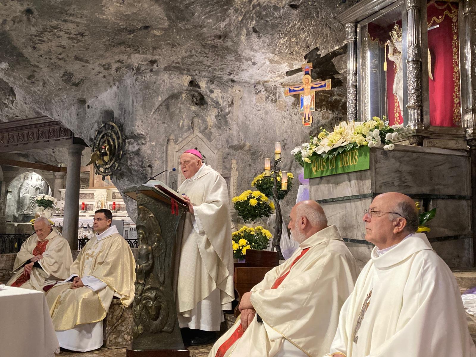 Mercoledì 5 novembre 2025, Mons. Vescovo si è recato in visita alla Basilica-Santuario di San Michele, a Monte Sant’Angelo (FG), dove ha celebrato la S. Messa nella grotta dell’apparizione dell’Arcangelo.