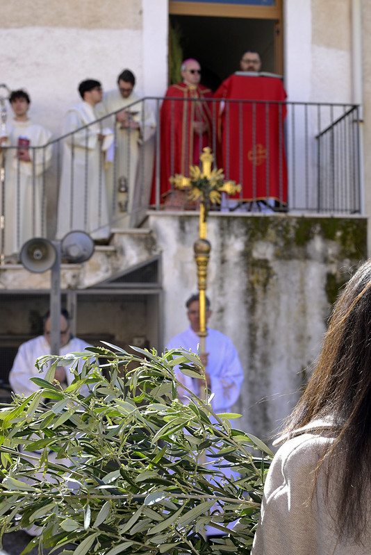 La croce diventa il luogo e il trono del suo regno, un trono capace di accogliere il suo corpo donato per noi, donato per tutti. Il calice, capace di accogliere il suo sangue per diventare per ognuno di noi bevanda e trasfusione di vita vera e di autenticità. Che questa Domenica delle Palme e della Passione del Signore, che questa settimana che iniziamo e che chiamiamo Santa o Grande, ecco, ci aiuti a contemplare la croce di Cristo: Lui crocifisso, morto per noi, Lui che dona sé stesso per ognuno, che si fa corpo e sangue per alimentarci.