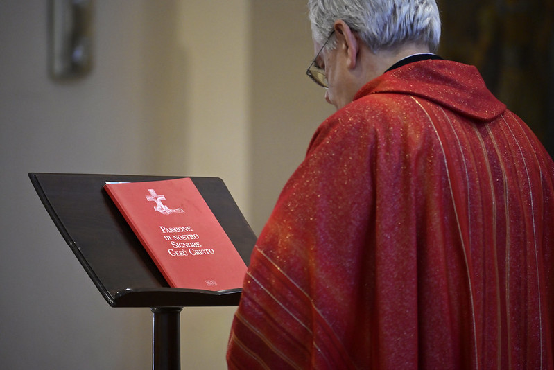 Al termine dell’ascolto della Passione del Signore, non c’è bisogno di nessun commento o omelia particolare. È piuttosto un invito, un invito a fare nostre queste parole, questi gesti, queste immagini che abbiamo ascoltato attraverso la voce di un testimone, l’evangelista Matteo, e di quanti erano presenti agli avvenimenti della Passione morte e sepoltura di Gesù. Se entriamo e facciamo sì che queste parole, queste immagini, questi gesti siano parte del nostro cuore e del nostro pensiero, ecco ci accorgeremo quanto di verità ci sta dentro e quanto importante sia la presenza di Dio che ha voluto identificarsi totalmente con l’umanità e con l’umanità che lo ha addirittura condannato a morte. Sì, perché Dio in Gesù è morto, ed è morto per mano umana, per scelta umana, per incomprensione umana.