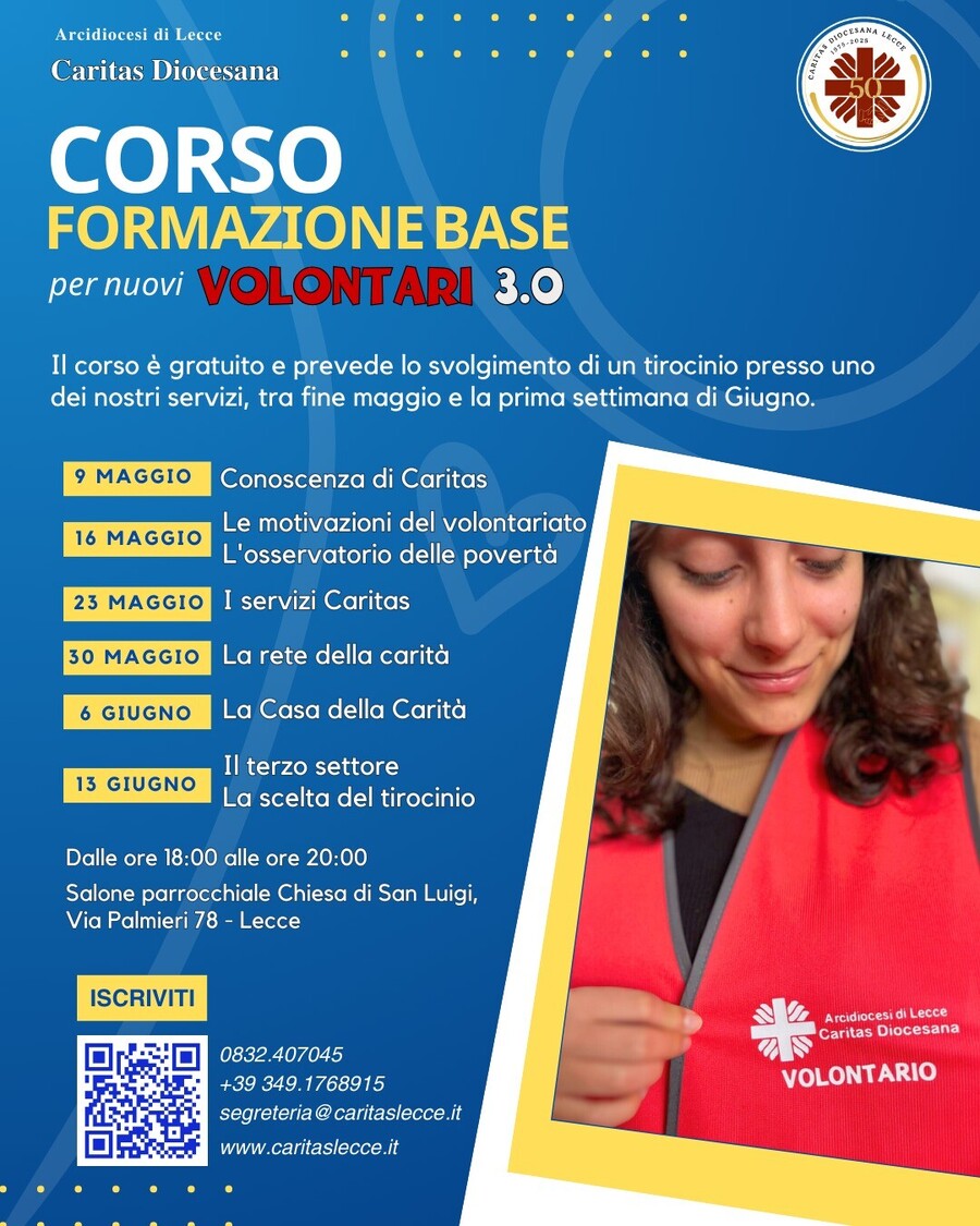 La Caritas diocesana di Lecce ripropone, per il terzo anno consecutivo, il Corso di formazione base per nuovi volontari 3.0.