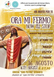 Un terzo appuntamento di adorazione eucaristica e confessioni si terrà il 16 agosto, dalle 21.30 alle 22.30, presso la chiesa di San Pietro in Otranto.