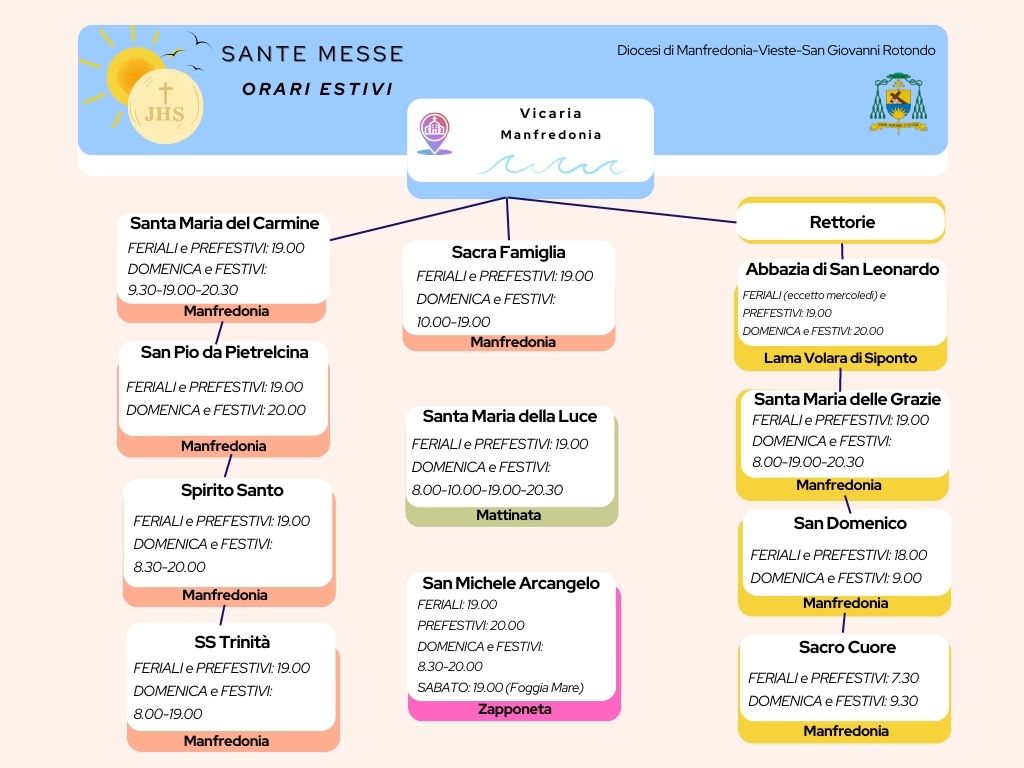 - Per garantire un servizio più completo ai fedeli e ai turisti in visita nel nostro amato Gargano, restiamo a disposizione dei sacerdoti per eventuali nuovi orari da aggiungere a quelli finora pubblicati.