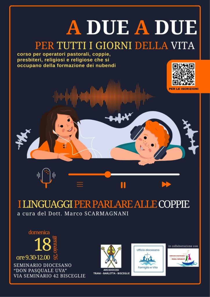 Un’occasione di formazione e confronto dedicata a chi opera nell’ambito della pastorale familiare è proposta dall’Arcidiocesi di Trani-Barletta-Bisceglie con il corso intitolato “A due a due. Per tutti i giorni della vita”. L’iniziativa si rivolge in modo particolare a operatori pastorali, coppie, presbiteri, religiosi e religiose impegnati nella formazione dei nubendi e nell’accompagnamento delle famiglie, offrendo strumenti e linguaggi adeguati per il dialogo con le … Continua a leggere