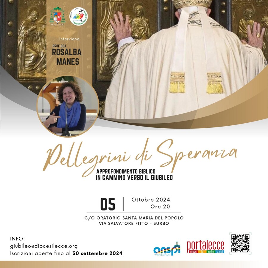 Domani sera 5 ottobre, alle 20, presso l’Oratorio Santa Maria del Popolo di Surbo, la biblista Rosalba Manes, terrà un incontro di approfondimento biblico proprio sul motto del Giubileo, “Pellegrini di Speranza”.