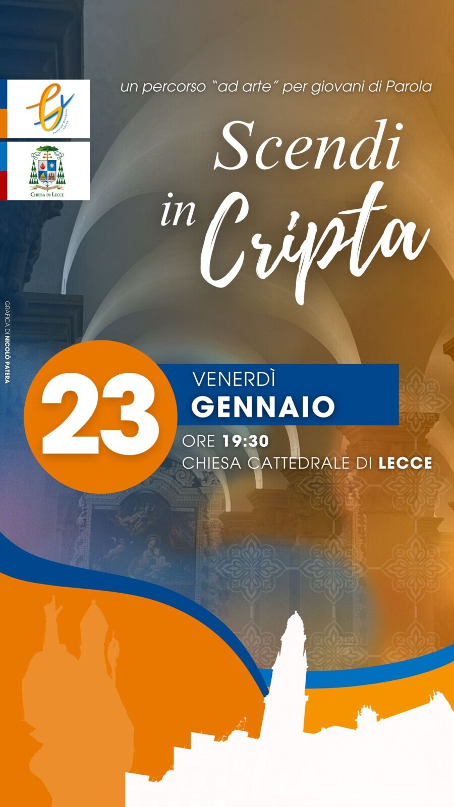 Riprenderanno il prossimo venerdì prossimo 23 gennaio, alle 19.30, nella cripta della cattedrale di Lecce, gli incontri della seconda edizione di “Scendi… in cripta”, percorso promosso dal Servizio diocesano di pastorale giovanile e pensato come una preziosa occasione di ascolto, confronto e incontro tra i giovani e la Parola di Dio.
