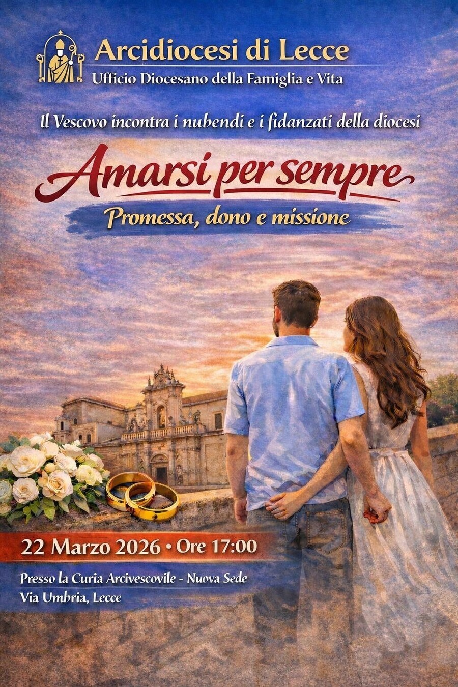 Anche attraverso questa iniziativa la Chiesa di Lecce, continua ad accompagnare con attenzione e vicinanza il cammino dei fidanzati verso il sacramento del matrimonio. La comunità ecclesiale accompagna con la preghiera queste coppie, certa che ogni nuova famiglia è un dono prezioso per la Chiesa e per la società.