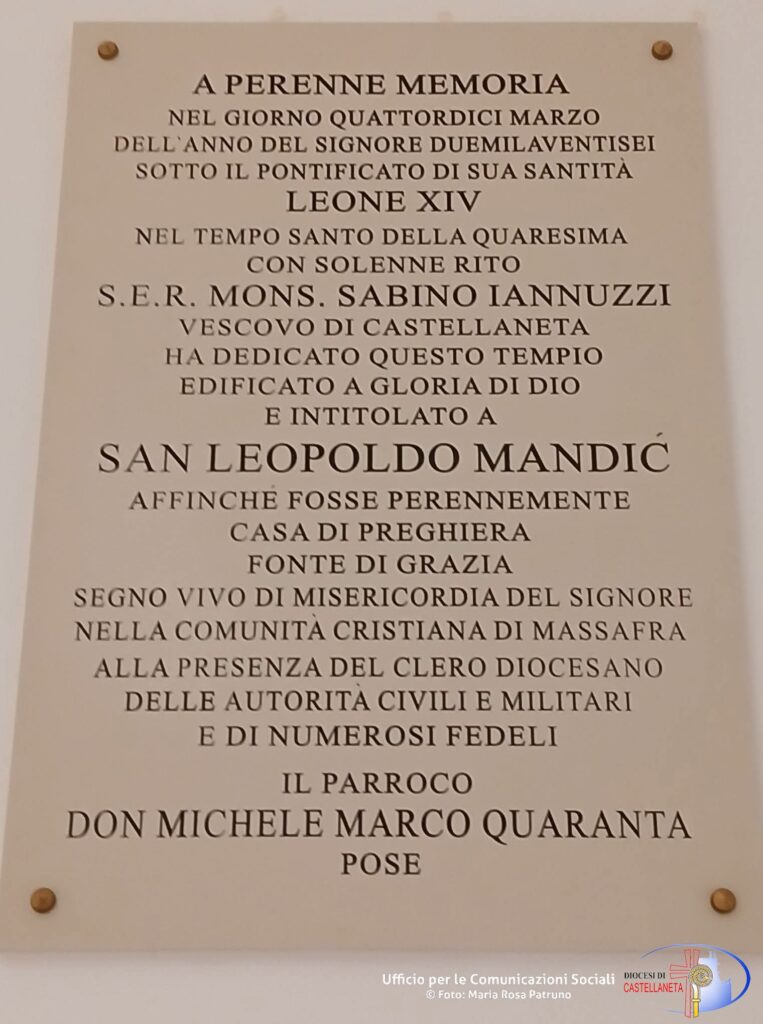 Sabato 14 Marzo 2026 la comunità di San Leopoldo Mandic in Massafra si è ritrovata per vivere la Santa Messa con il Rito di Dedicazione della nuova Chiesa parrocchiale presieduta da Mons. Sabino Iannuzzi