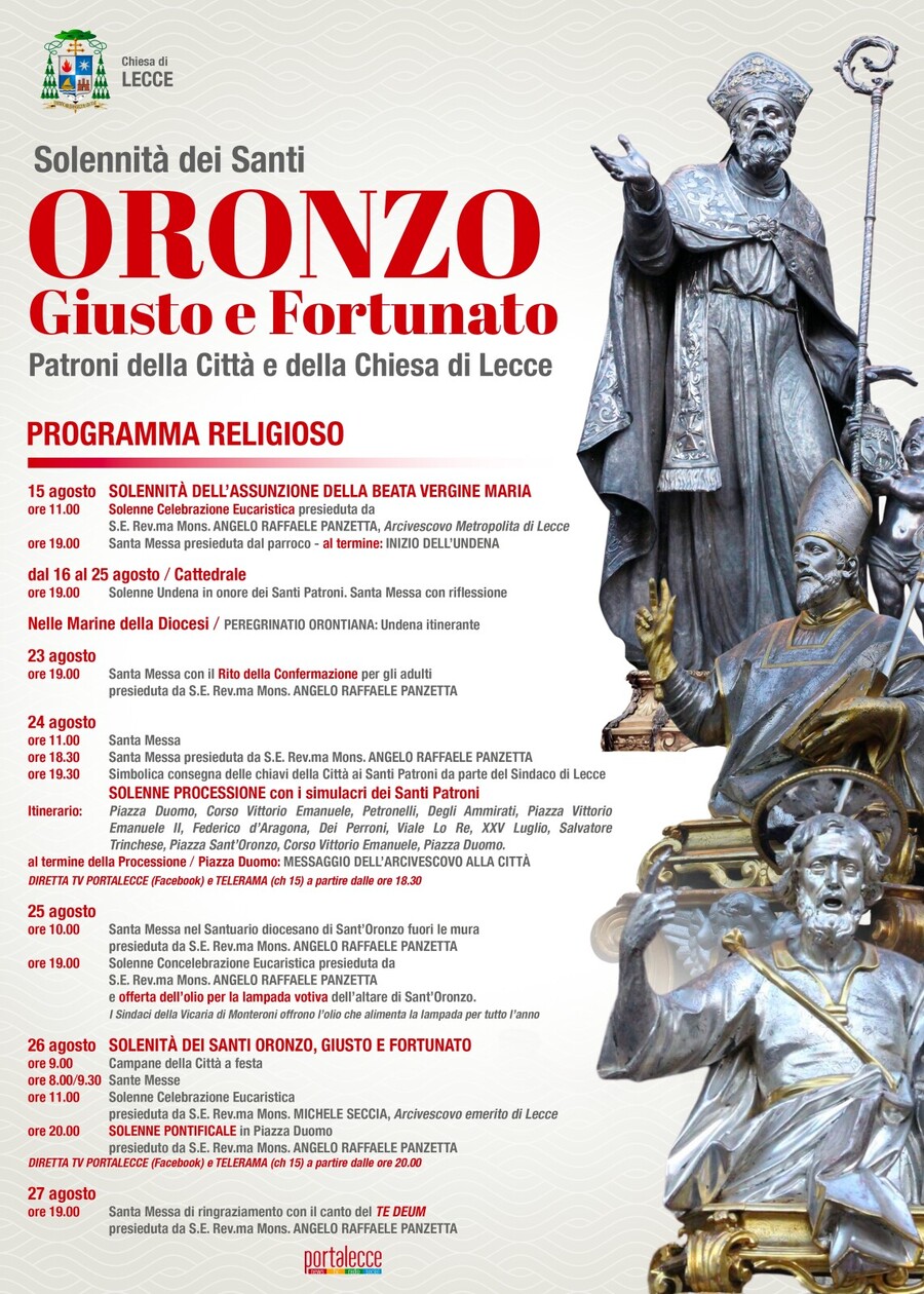 Prende il via oggi, solennità della Vergine Assunta in cielo, la solenne undena in onore dei santi patroni della città e della Chiesa di Lecce, Oronzo, Giusto e Fortunato.