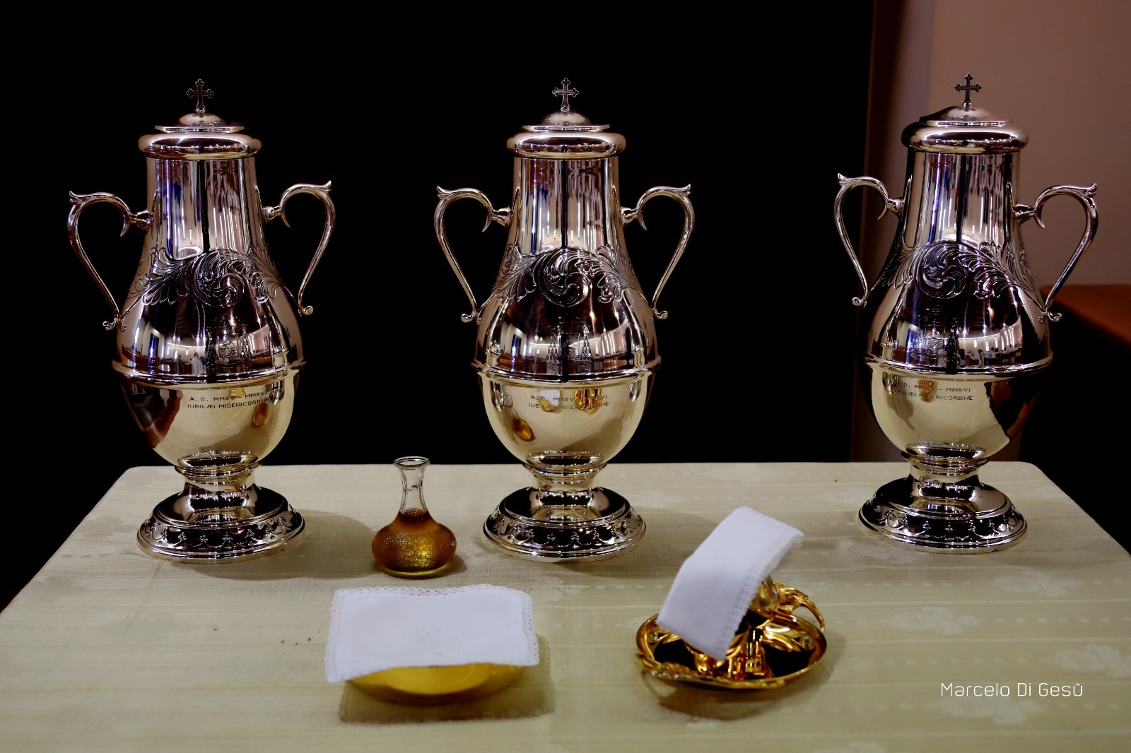 2. La Benedizione degli Olii Santi: Durante la celebrazione verranno benedetti l’Olio dei Catecumeni (per chi si prepara al Battesimo) e l’Olio degli Infermi (per il conforto dei malati). Il momento culminante sarà la consacrazione del Sacro Crisma, l’olio misto a profumo che verrà utilizzato per i Battesimi, le Cresime e le Ordinazioni sacre in tutto l’anno a venire.