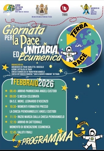 In occasione di Gennaio, Mese della Pace per l’Azione Cattolica, domenica 1 febbraio, l’A.C. della città di Trani ha deciso di proporre a tutte le parrocchie della città e alle altre due confessioni religiose (evangelica ed ortodossa) presenti sul territorio, una festa della pace, aperta a tutti i suoi settori ed articolazioni (Acr-Giovani e issimi e Adulti) ed ecumenica, che terminasse con dei gesti concreti … Continua a leggere