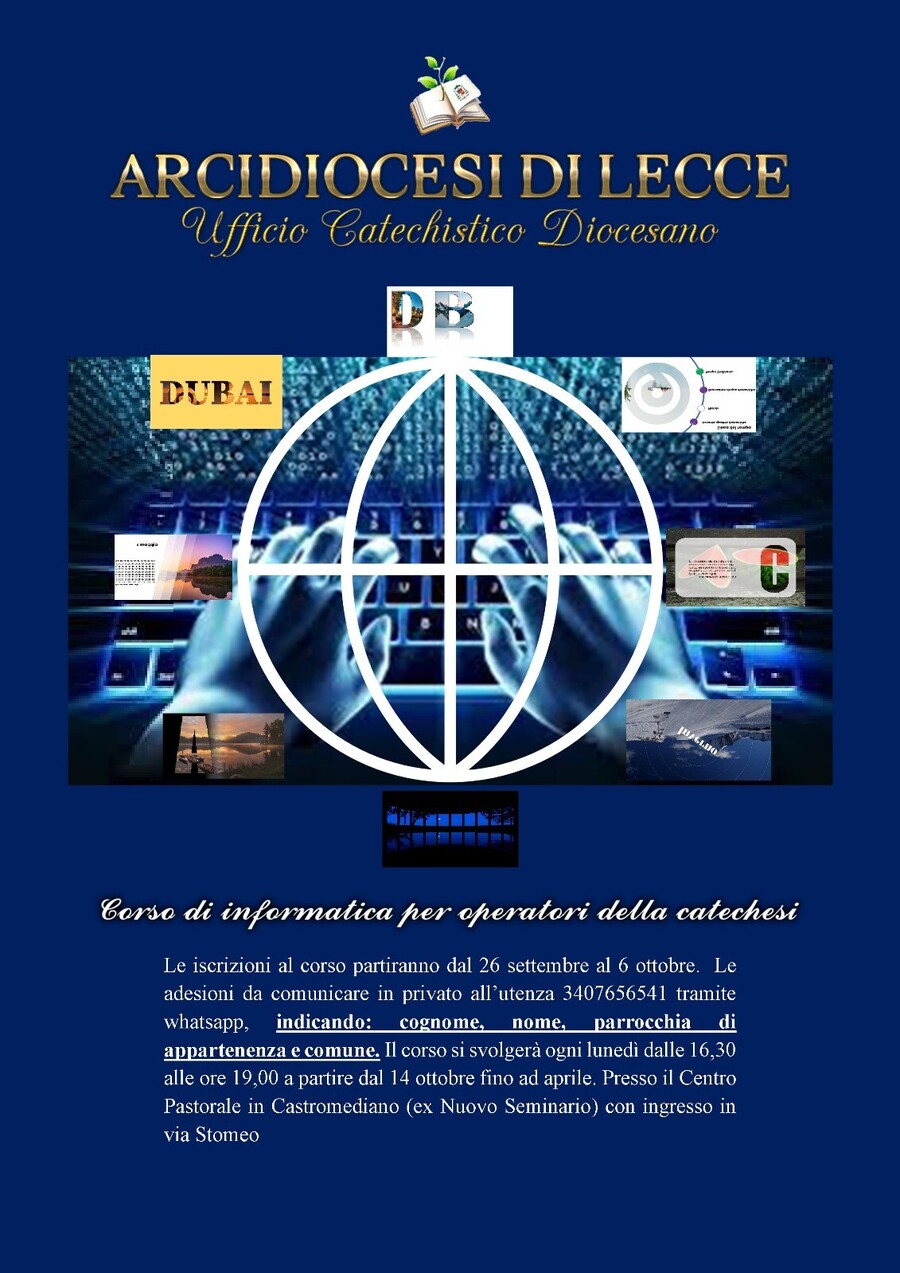 Per il quinto anno consecutivo l’Ufficio catechistico diocesano di Lecce ripropone gratuitamente un corso di informatica base per operatori della catechesi.