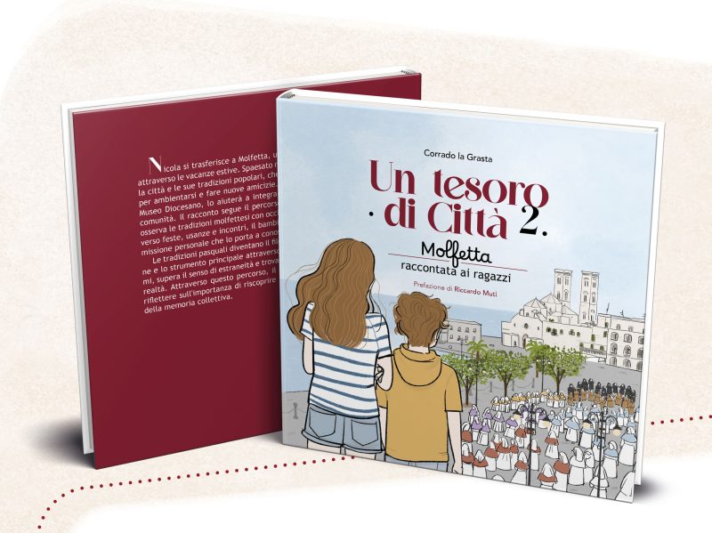 Un tesoro di città 2. La Settimana Santa di Molfetta raccontata ai ragazzi” è un racconto in prima persona: il protagonista Nicola si trasferisce a Molfetta, una città che conosceva solo attraverso le vacanze estive. Spaesato ma curioso, inizia a scoprire la città e le sue tradizioni popolari, che diventano per lui un modo per ambientarsi e fare nuove amicizie. L’incontro con Lucrezia, al Museo Diocesano, lo aiuterà a integrarsi e a sentirsi parte della comunità. Il racconto segue il percorso di crescita di Nicola, che osserva le tradizioni molfettesi con occhi innocenti e curiosi. Attraverso questo percorso, il racconto invita il lettore a riflettere sull’importanza di riscoprire le proprie radici e il valore della memoria collettiva.