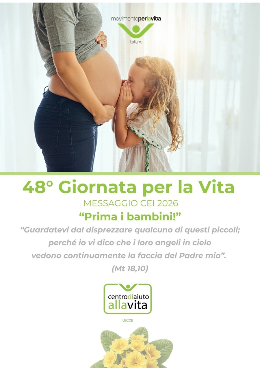 Si celebrerà domenica prossima 1° febbraio la 48esima Giornata nazionale per la vita che quest’anno avrà come tema “Prima i bambini”.