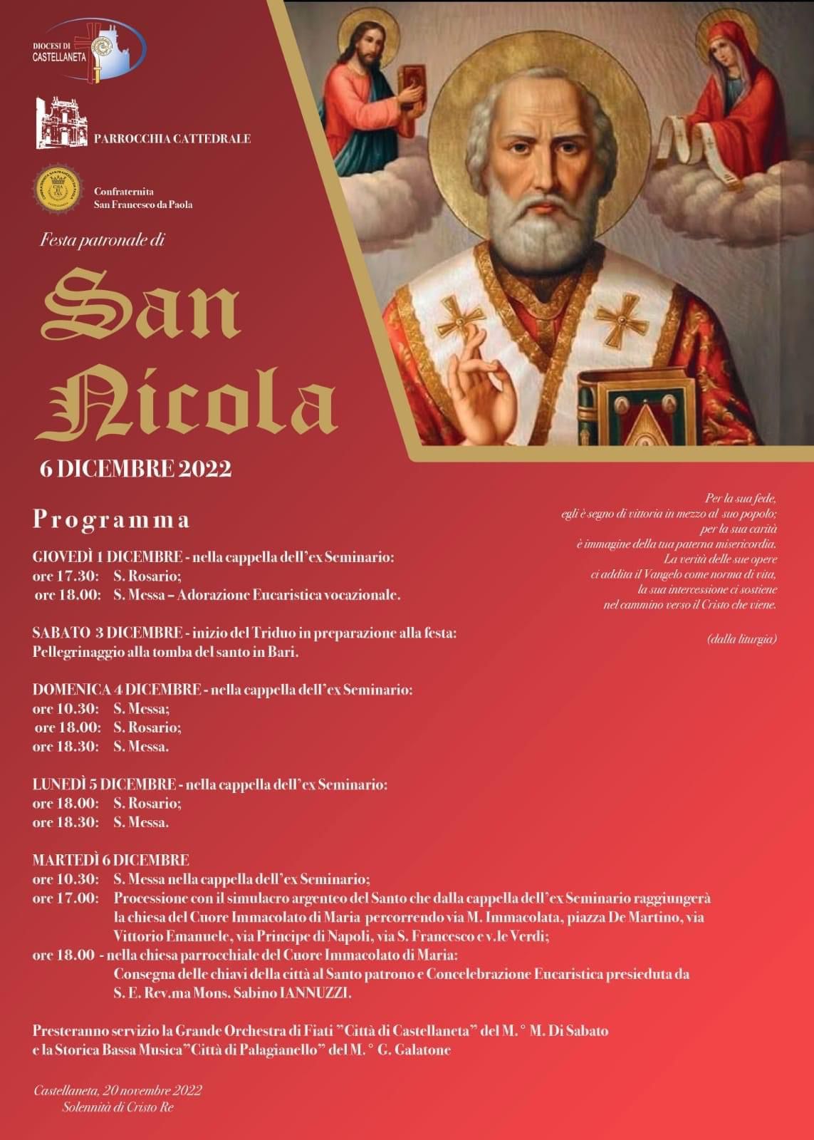 Presteranno servizio la Grande Orchestra di Fiati “Città di Castellaneta” del M. ° M. Di Sabato e la Storica Bassa Musica” Città di Palagianello” del M.° G. Galatone